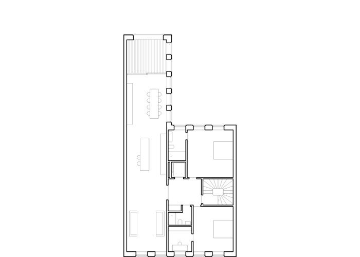 Preisträger Wettbewerb Gründungsviertel - Neues Wohnen auf historischen Parzellen im UNESCO-Welterbe Lübecker Altstadt - Haustyp 1 Beispielgrundriss 1.OG